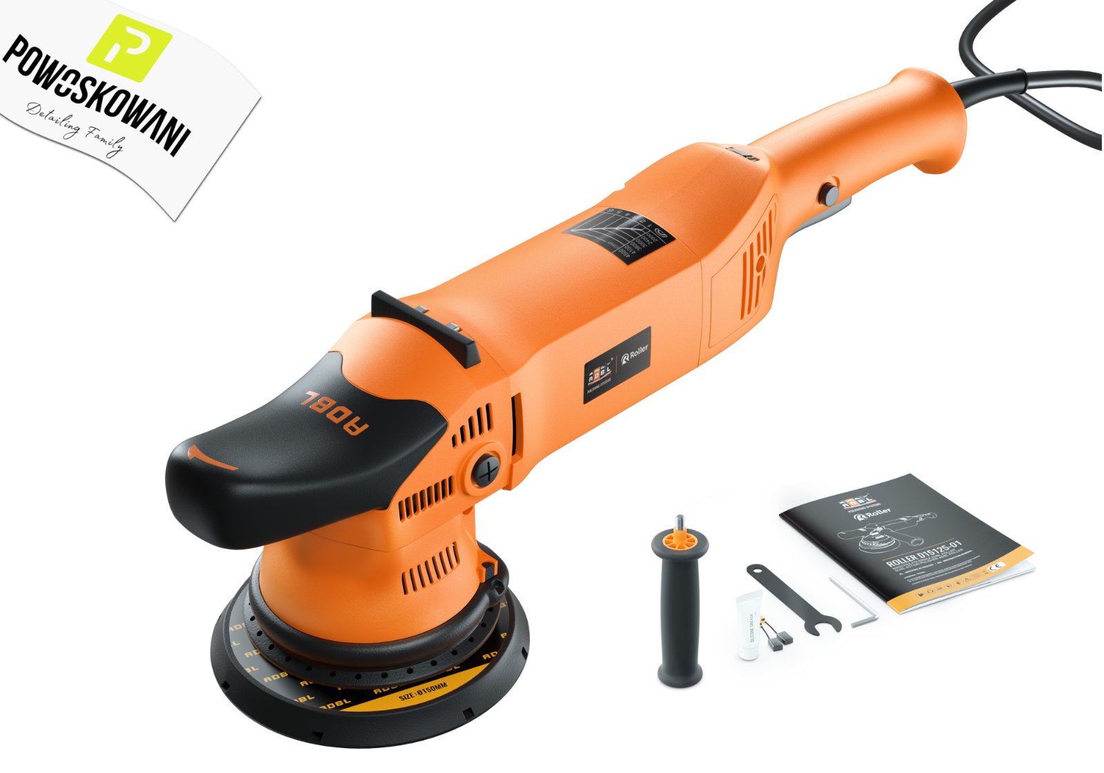 ADBL ROLLER D21125-01 to maszyna polerska Dual-Action o skoku 21 mm. Dzięki starannemu wyważeniu maszyny oraz talerza oporowego z serią padów ADBL ROLLER o średnicy 150 mm praca jest wygodna, pozbawiona nieprzyjemnych wibracji na każdym z 6 biegów. Duża średnica talerza oporowego oraz skok 21 mm pozwala na znaczne skrócenie i optymalizację czasu i efektów pracy na dużych elementach takich maska, dach czy klapa bagażnika.