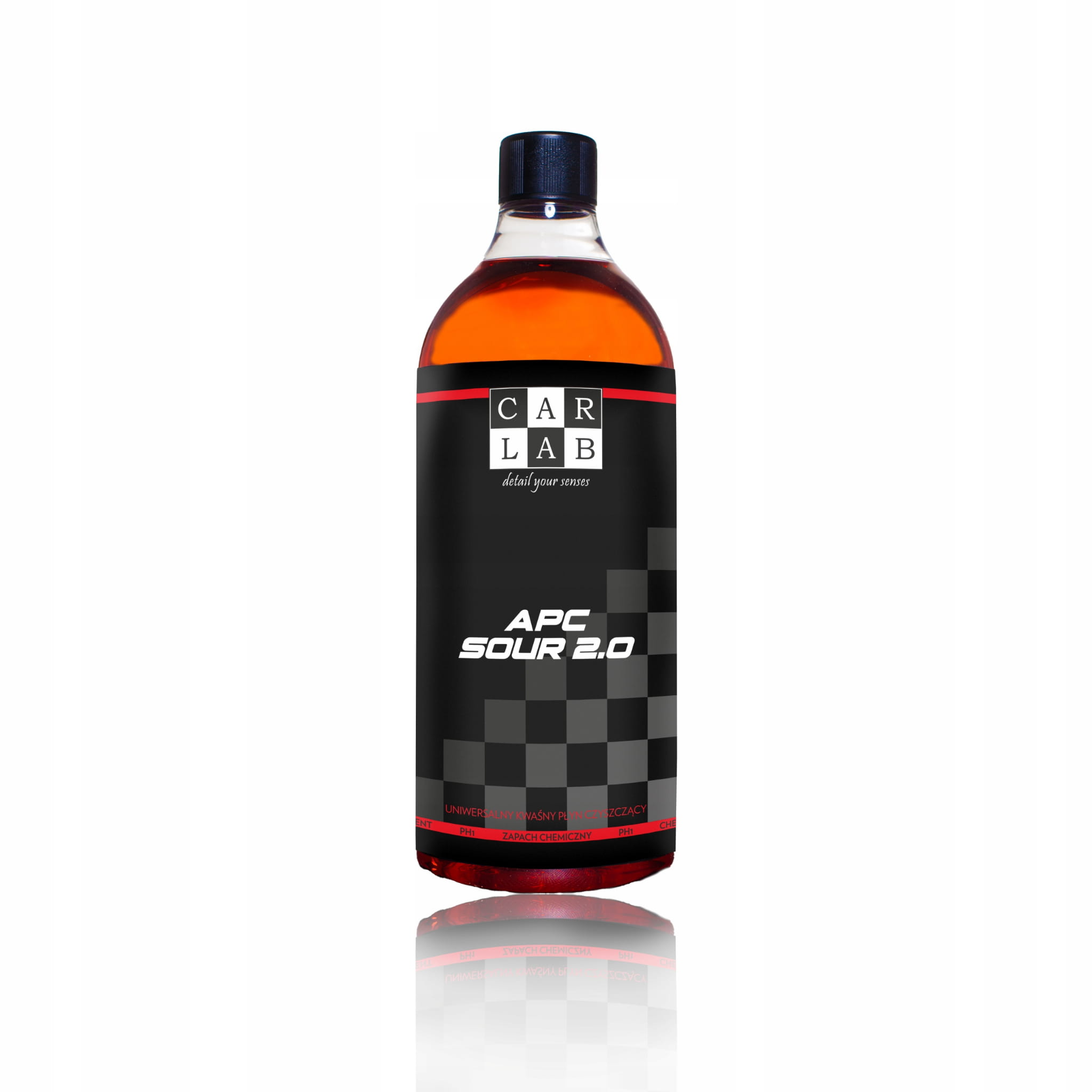 CARLAB APC SOUR 2.0 to udoskonalona formuła pierwszej wersji uniwersalnego preparatu czyszczący o niskim odczynie pH. Doskonałe właściwości czyszczące w połączeniu z silnym działaniem kwasów sprawia, że preparat z łatwością usuwa nawet najtrudniejsze zabrudzenia. APC SOUR opracowany został jako preparat uniwersalny i w zależności od użytego stężenia może być stosowany do mycia felg, usuwania waterspotów oraz odtykania powłok. Nowoczesna formuła sprawia, że preparat jest równie skuteczny jak preparaty wykorzystujące silne kwasy mineralne, jest natomiast zdecydowanie bardziej bezpieczny oraz zdecydowanie mniej uciążliwy w użyci – nie wydziela żrących oparów.
