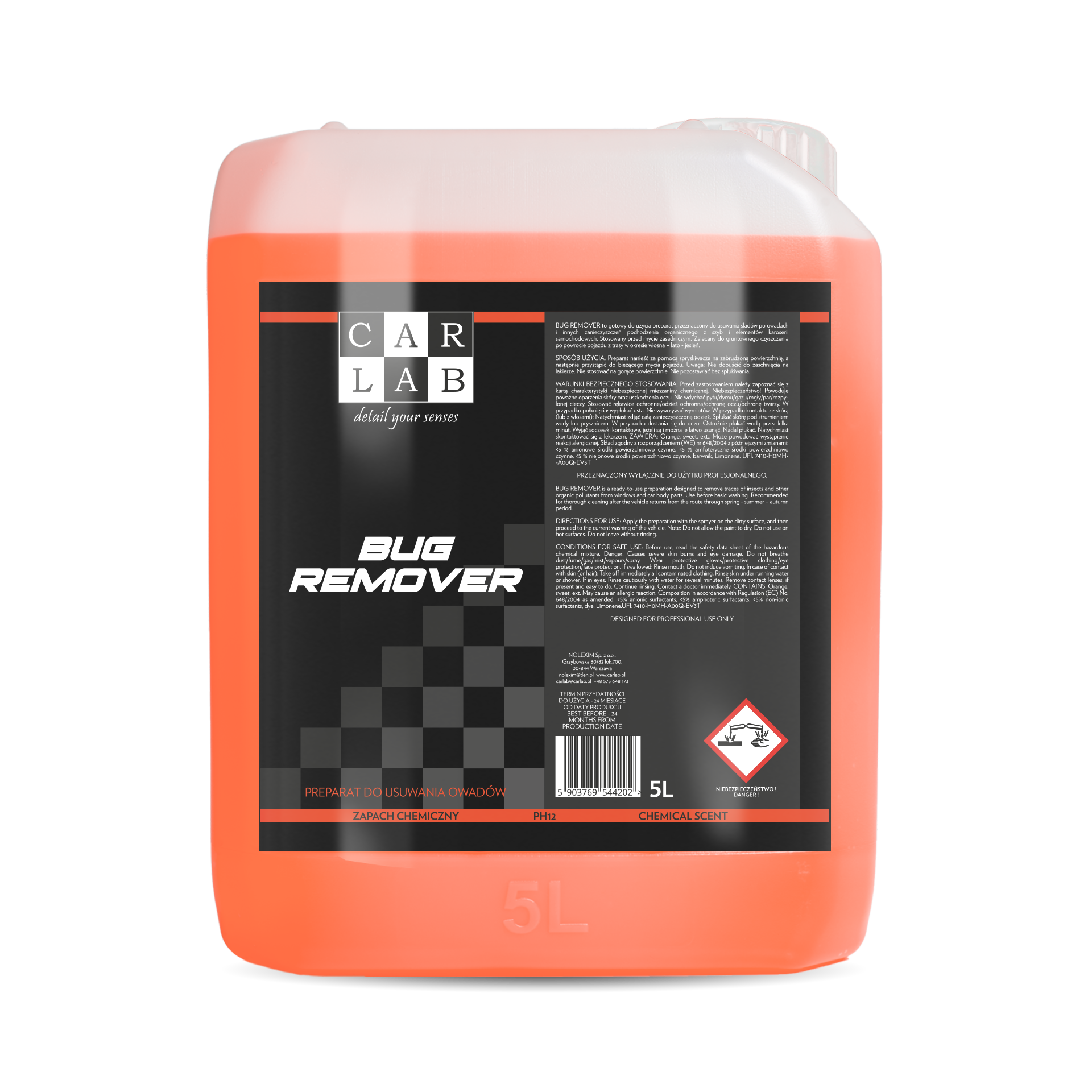 CARLAB BUG REMOVER to gotowy do użycia preparat przeznaczony do usuwania śladów po owadach i innych zanieczyszczeń pochodzenia organicznego z szyb i elementów karoserii samochodowych.