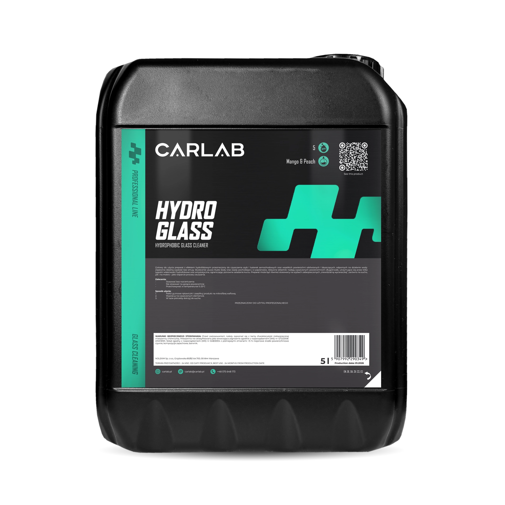 CARLAB PRO Hydro Glass Cleaner 5L - hydrofobowy płyn do mycia szyb