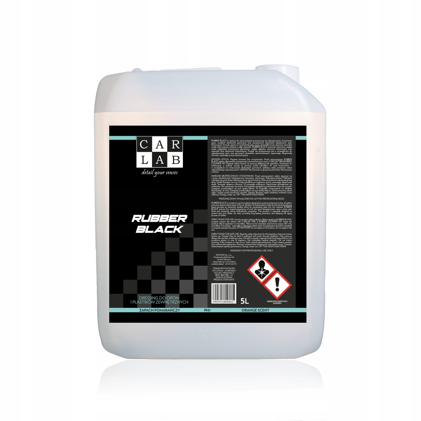 CARLAB RUBBER BLACK to gotowy do użycia preparat przeznaczony do zabezpieczania i konserwacji opon, wszelkich elementów gumowych oraz zewnętrznych elementów plastikowych auta. Nowoczesna formuła oparta na wysokofunkcyjnej cieczy aminosilikonowej zapewnia niezwykle trwały efekt poprzez wnikanie w głąb materiału.