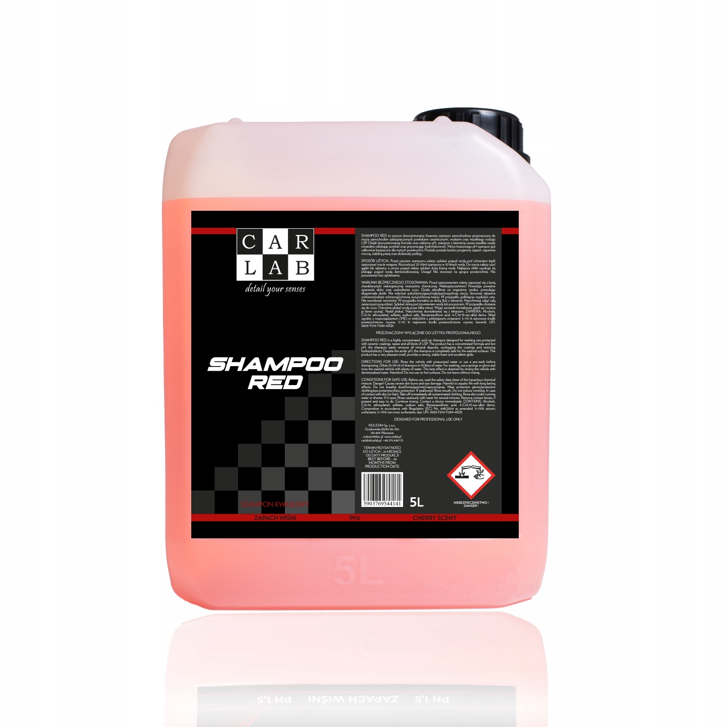 CARLAB SHAMPOO RED to wysoce skoncentrowany, kwasowy szampon samochodowy przeznaczony do mycia samochodów zabezpieczonych powłokami ceramicznymi, woskami oraz wszelkiego rodzaju LSP.