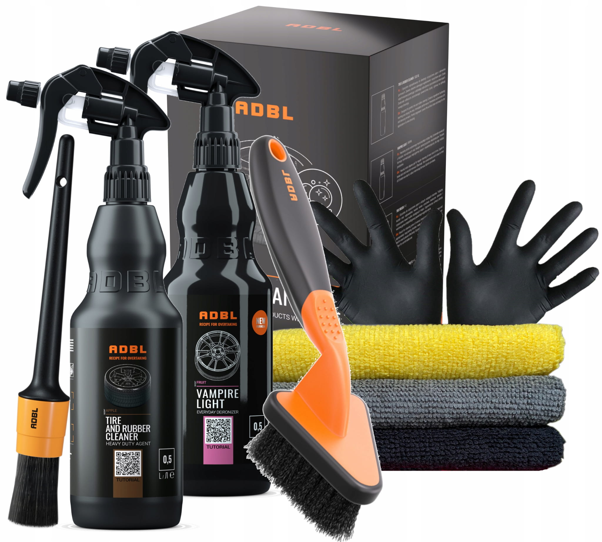 ADBL Wheel Cleaner Set to praktyczny zestaw produktów do mycia opon i felg.