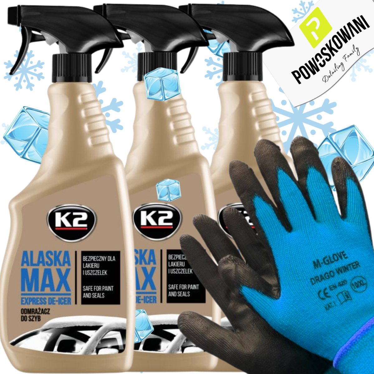 K2 Alaska MAX 3x 700 ml Odmrażacz do szyb ZESTAW ZIMOWY Rękawice OCIEPLANE