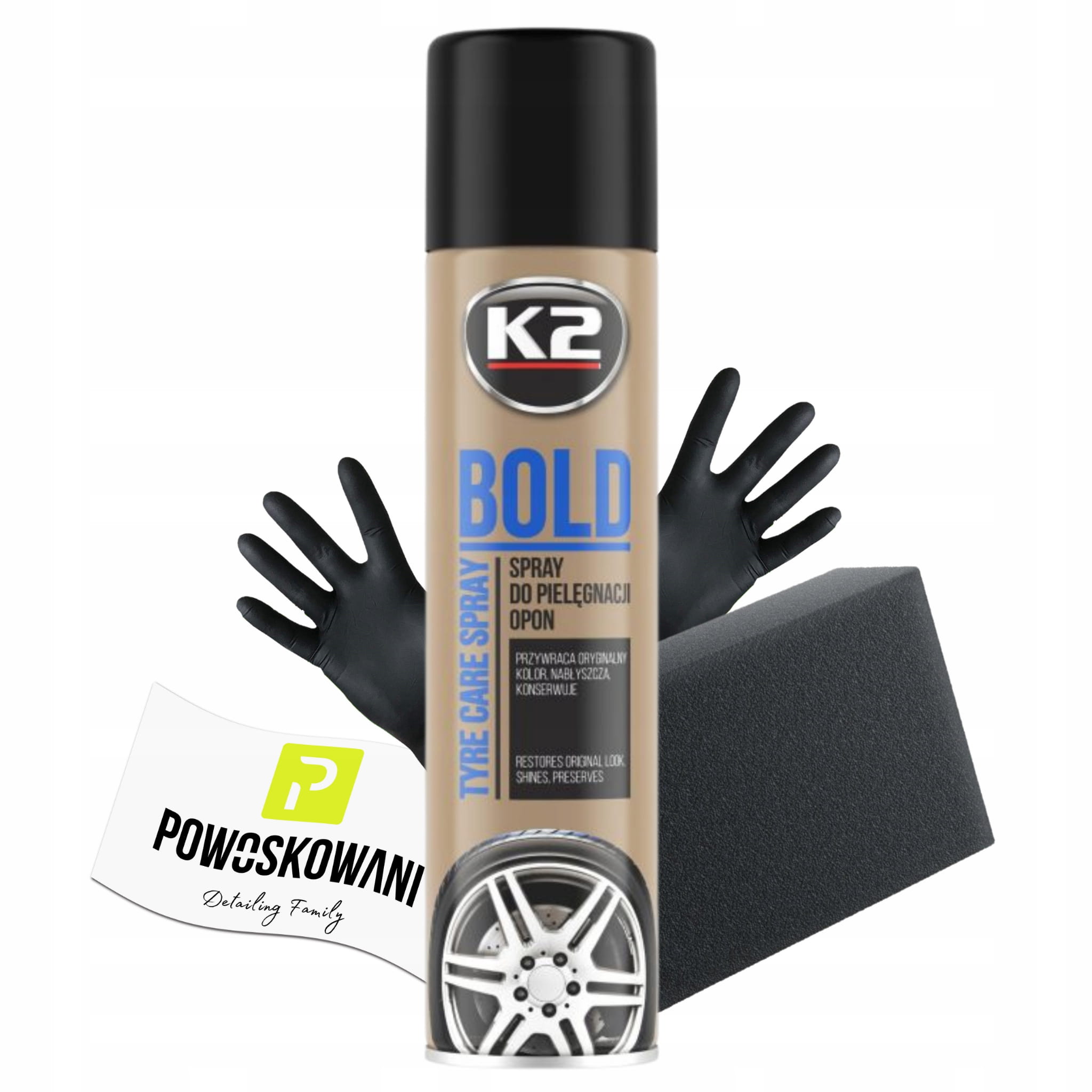 K2 BOLD 600 ml CZERNIDŁO DO OPON GUMY PLASTIKU SPRAY NABŁYSZCZA TRWAŁY