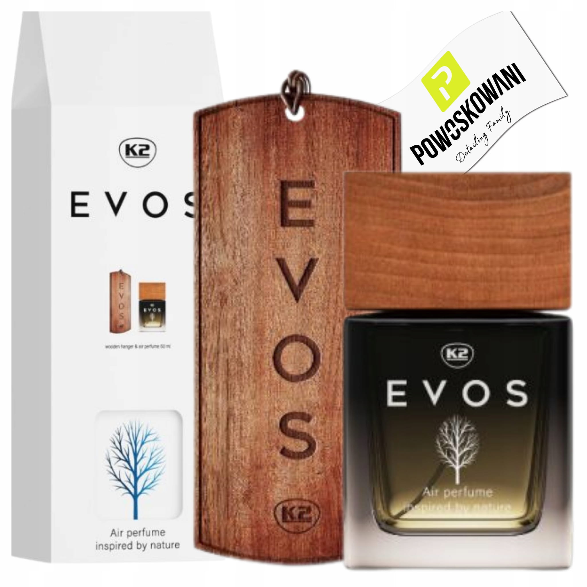Zestaw zawiera: 1 szt. drewnianej zawieszki zapachowej, 1 flakon perfum K2 Evos 50 ml