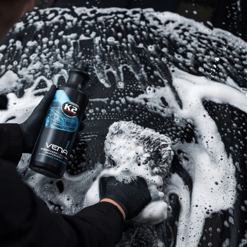 Hydrofobowy szampon samochodowy do zadań specjalnych K2 Vena Pro jest w pełni bezpieczny dla powłok ochronnych na lakierze, niezależnie czy pracuje w kontakcie z woskiem ochronnym, czy powłoką ceramiczną.
