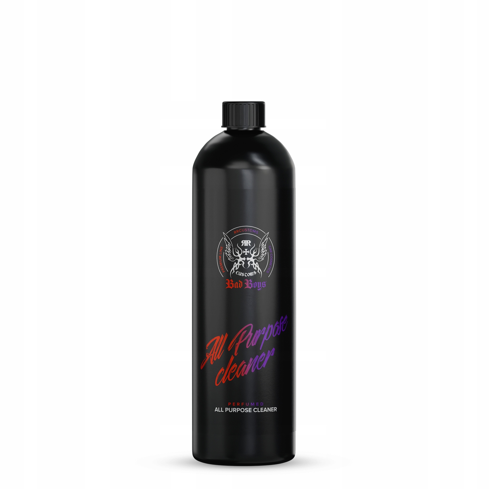 RR Customs Bad Boys All Purpose Cleaner APC to uniwersalny koncentrat czyszczący, który skutecznie wnika, rozbija brud, smar, trudne plamy i utrwalone zabrudzenia. Wiąże je, tworząc łatwą do usunięcia zawiesinę. Produkt wymaga rozcieńczenia! Posiada zasadowe pH. Pracę uprzyjemni intensywny, malinowy zapach.