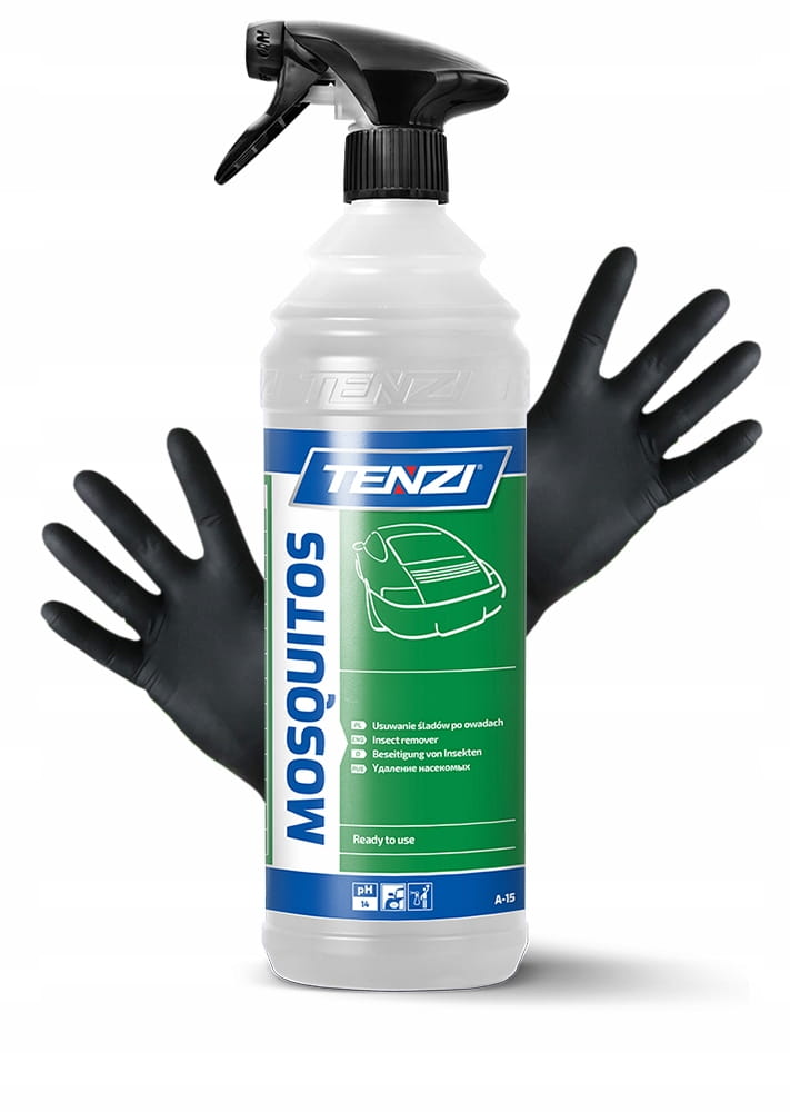 TENZI Mosquitos to gotowy do użycia preparat przeznaczony do usuwania śladów po owadach i innych zanieczyszczeń pochodzenia organicznego z szyb i karoserii samochodowych.