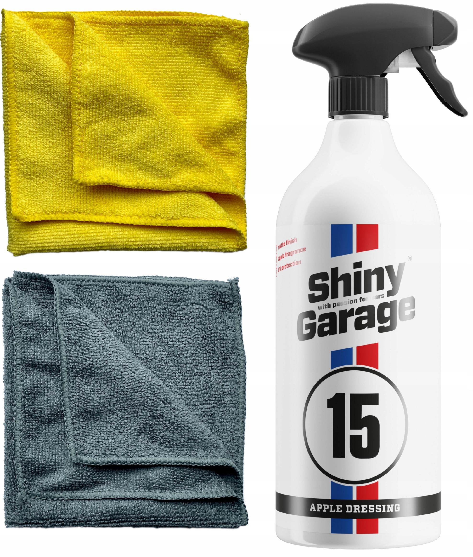 Shiny Garage Apple Plastic Dressing to preparat do pielęgnacji elementów plastikowych, drewnianych i chromowanych wewnątrz samochodu. Odpowiednia kompozycja wosków sprawia, że produkt bardzo dobrze odżywia, pozostawiając matowe wykończenie i przyjemny jabłkowy zapach.