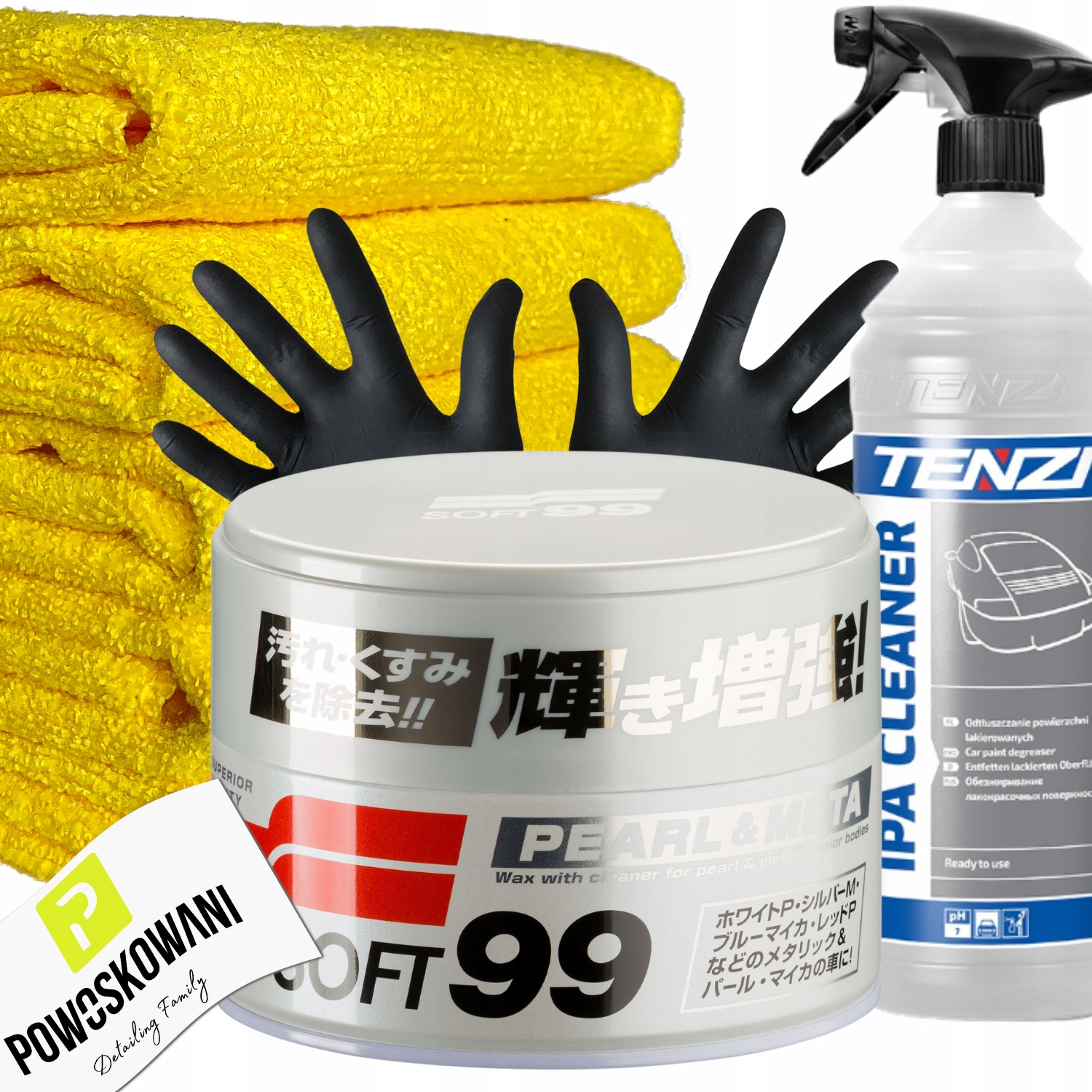 Zestaw prezentowy z woskiem Soft99 Pearl & Metallic, został tak skomponowany, żeby umożliwić odtłuszczenie oraz zabezpieczenie lakieru. W zestawie oprócz wosku i odtłuszczacza znajdują się ściereczki z mikrofibry, aplikator gąbkowy i rękawice nitrylowe.